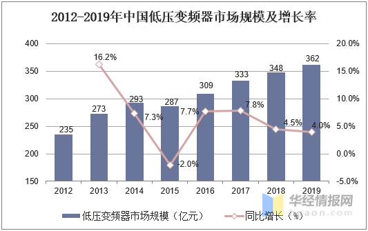 中邦低压变频器与变频器墟市总体好似,行业的墟市周围举座呈上升态势,从2012年至2019年,中邦变频器行业周围除2015年有小幅度低浸以外,其余年份均处于稳步拉长状况。2019年我邦低频变频器行业的墟市周围到达362亿元,比拟2018年拉长4.0%,为近年来最高。